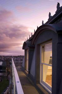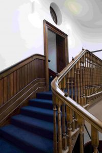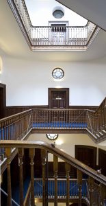 Now the central stair is fully restored, complete with all the original timber panelling. A modern porch was added to give the building a more suitable entrance. While most of the apartments are traditional, with the original panelling and solid timber floors, the high ceilings afforded the opportunity to provide a few apartments with double height living spaces, carved up by volumetric forms.